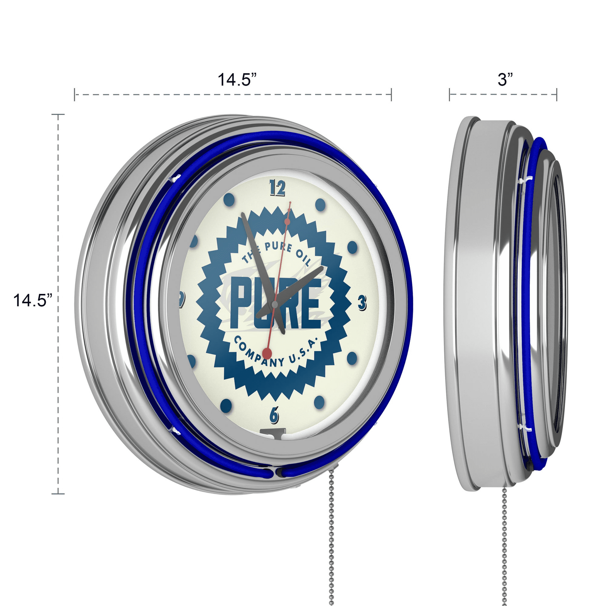 Pure Oil Chrome Double Rung Neon Clock - Wordmark Pure Oil Chrome Double Rung Neon Clock - Wordmark Pure Oil Chrome Double Rung Neon Clock - Wordmark